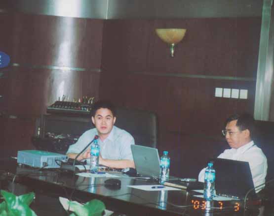 公司領導向來賓介紹VOIP業務情況
