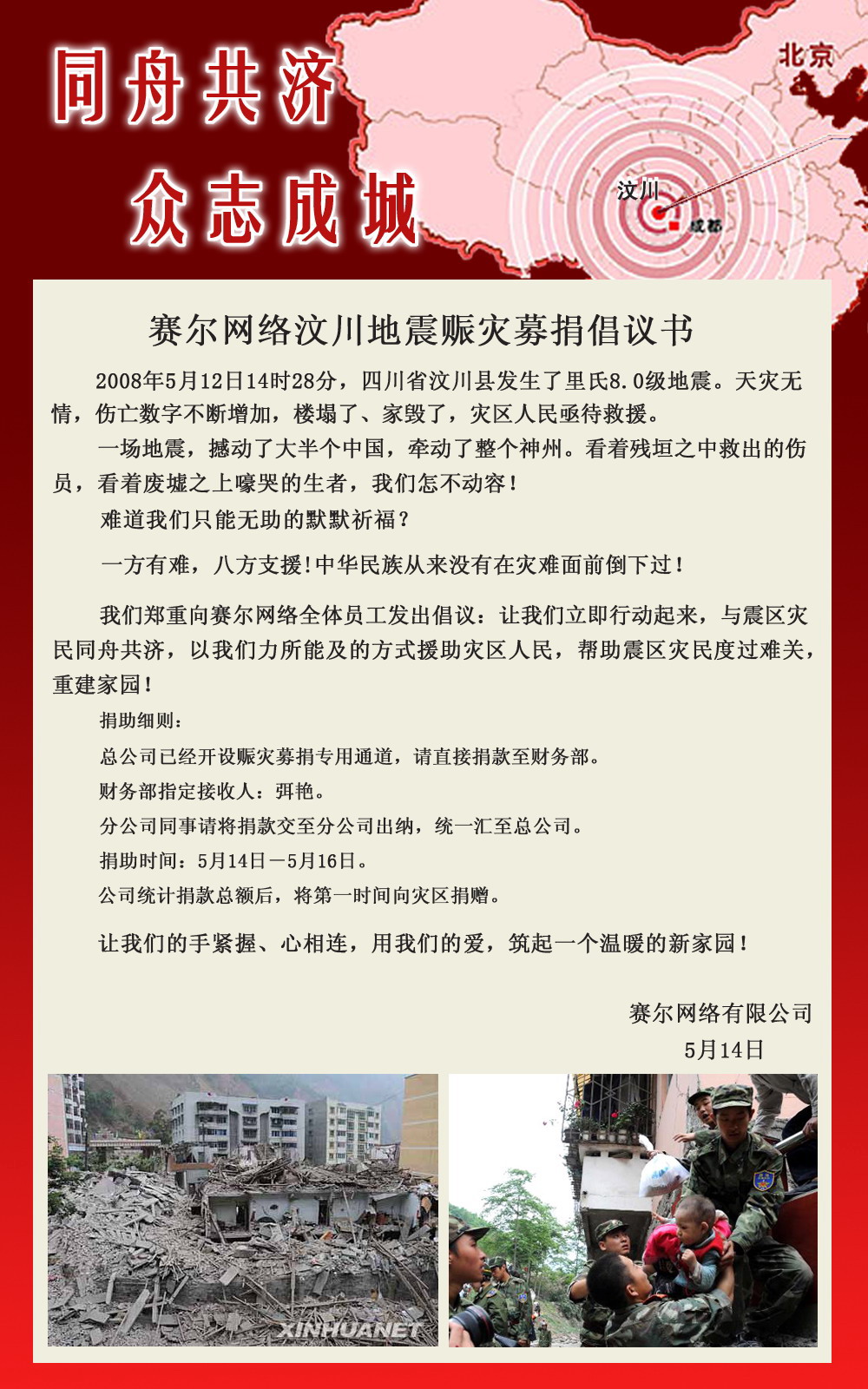 賽爾網絡汶川地震賑災募捐倡議書
